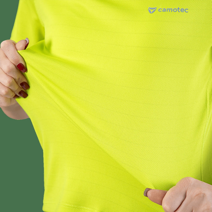 The Pani FitPro Lemon Women's Sports T-Shirt by Camotec is the perfect choice for everyday wear, outdoor activities, and sports. Designed with the female form in mind, this t-shirt features an ergonomic cut that ensures freedom of movement and comfort during extended use.