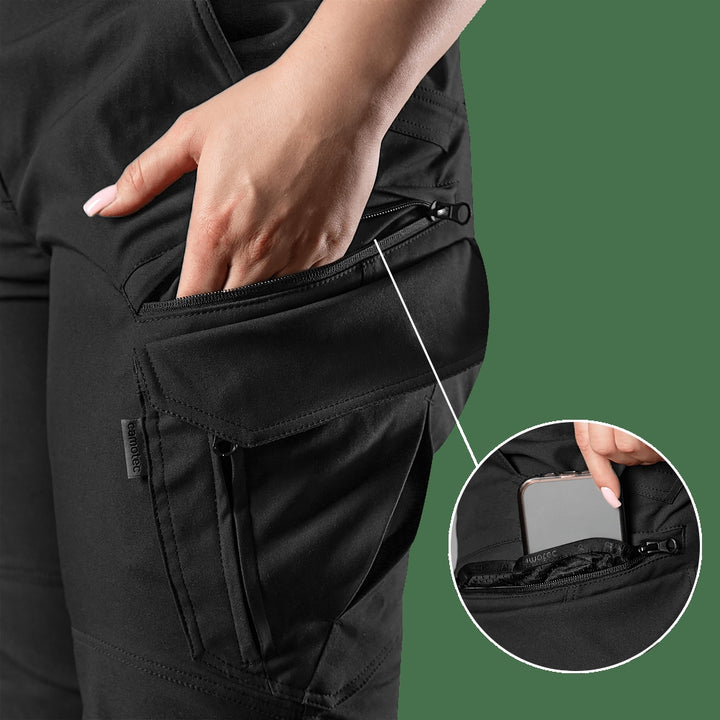 - Thigh pockets with dual access (top and side) for easy access to items from any position.
