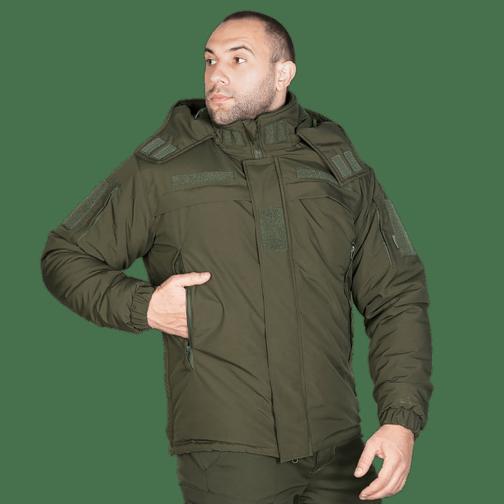 The Patrol 2.0 Twill Winter Jacket in Olive (6657) is specifically designed for security and paramilitary personnel, making it an essential third protective layer in your layered clothing system. This jacket combines durable materials, a thoughtful anatomical fit, and functional details necessary for service in harsh weather conditions.