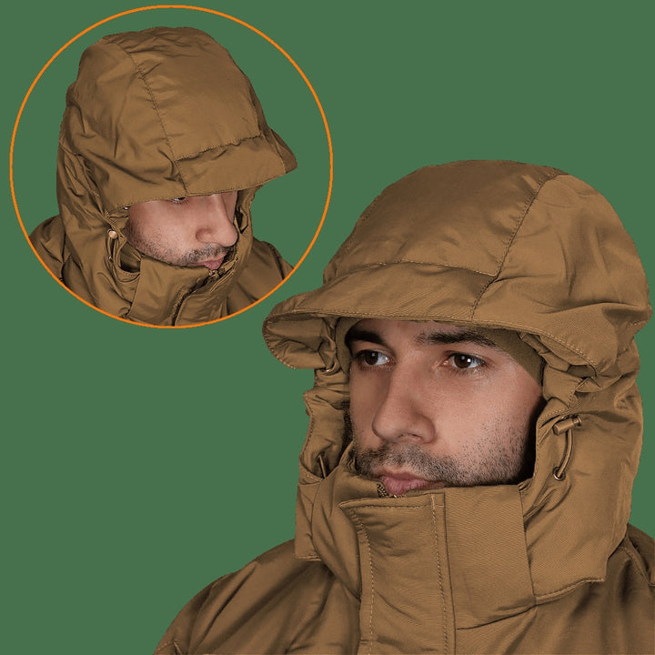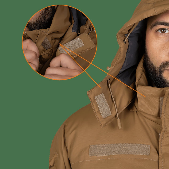 - Anatomical cut: Provides freedom of movement with an insulated, removable hood that secures with a zipper and Velcro.