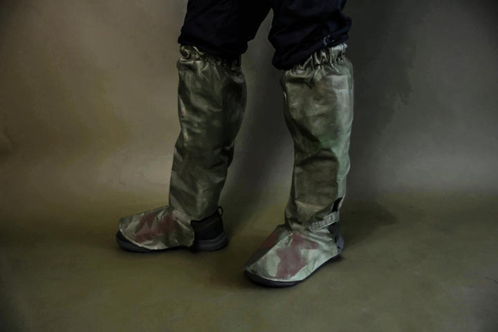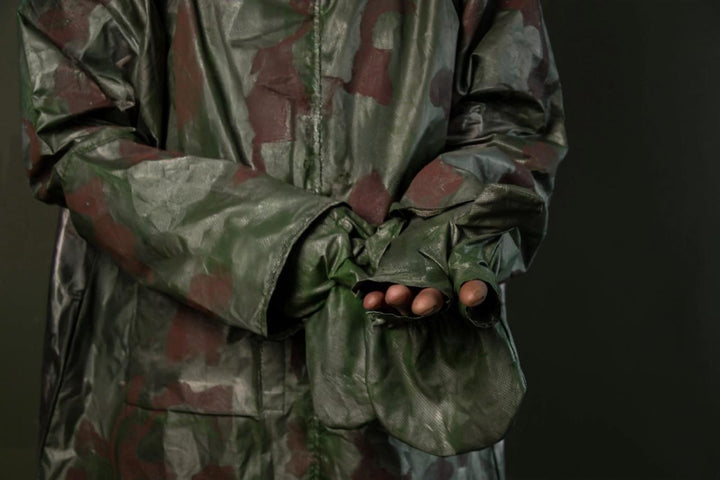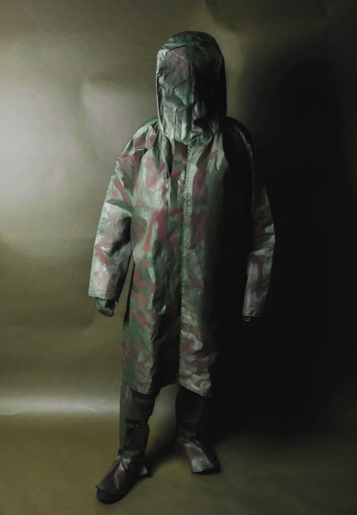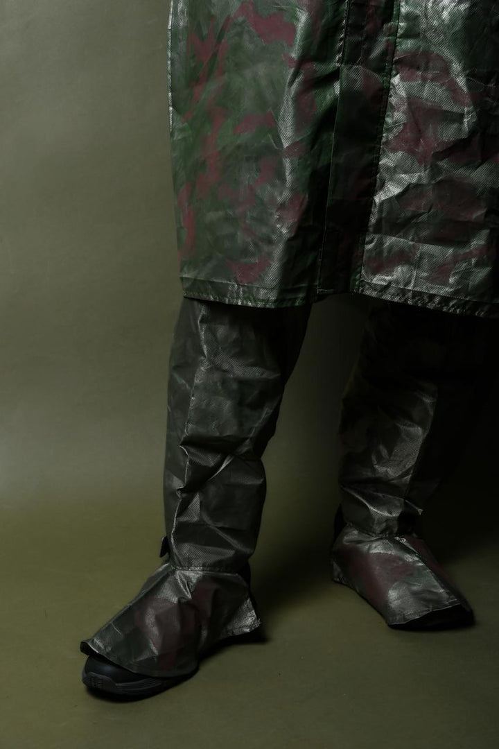 - Components: Poncho with hood and mask, gaiters, and gloves