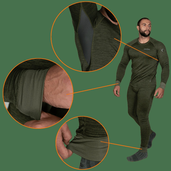 The Polarheat QS Pro 2.0 thermal underwear in Olive Melange (SKU 7365) is an advanced first layer designed for those who value both functionality and aesthetics. This updated version features improved fit and a range of enhancements for use in low and extreme low temperatures.