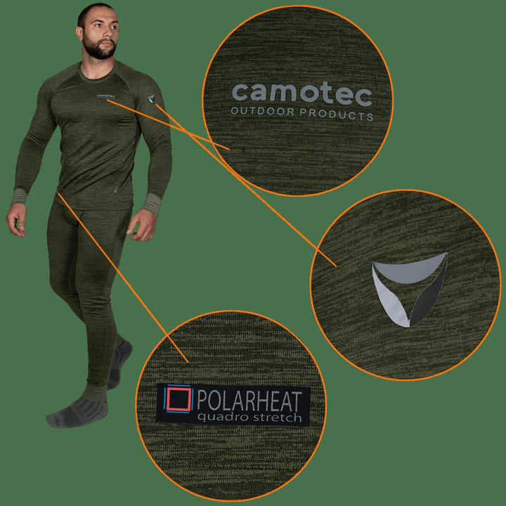 The Polarheat QS Pro 2.0 is perfect for military personnel, hunters, outdoor enthusiasts, and anyone needing a reliable first layer with excellent thermoregulation, durability, and comfort. Its versatile Olive Melange color makes it suitable for field conditions, while its anatomical cut and elastic inserts ensure necessary mobility.