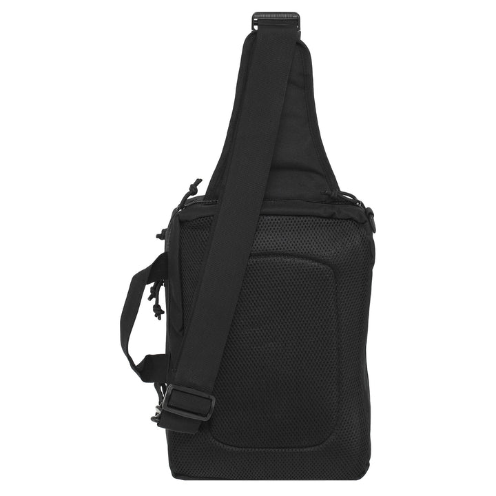 The Silver Knight Sling Bag is designed for convenience and functionality, offering a compact size of 13"x9"x4" and a capacity of up to 2.1 gallons, perfect for carrying all your essential items securely.