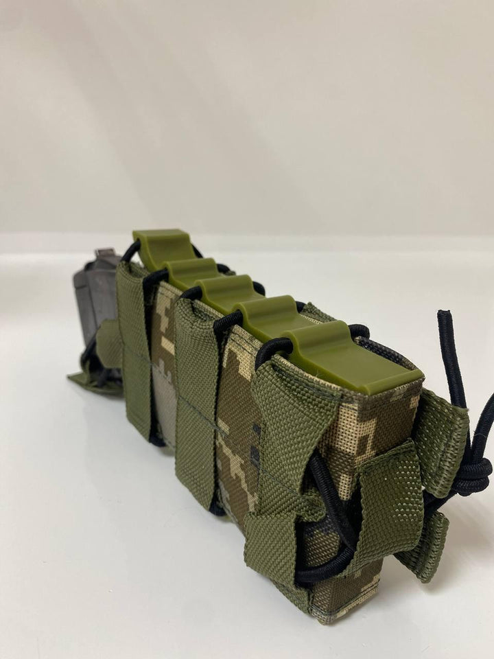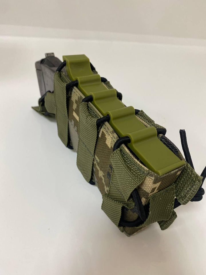 - Rigid plastic side frame to maintain shape and facilitate quick magazine insertion