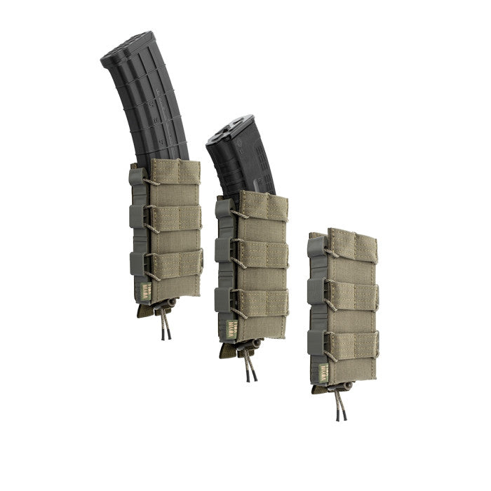 Introducing the Single Magazine Pouch for AK in Olive, designed for quick access and secure storage of your magazines. Its robust construction and Molle interface make it an essential accessory for military, hunting, and tactical applications.