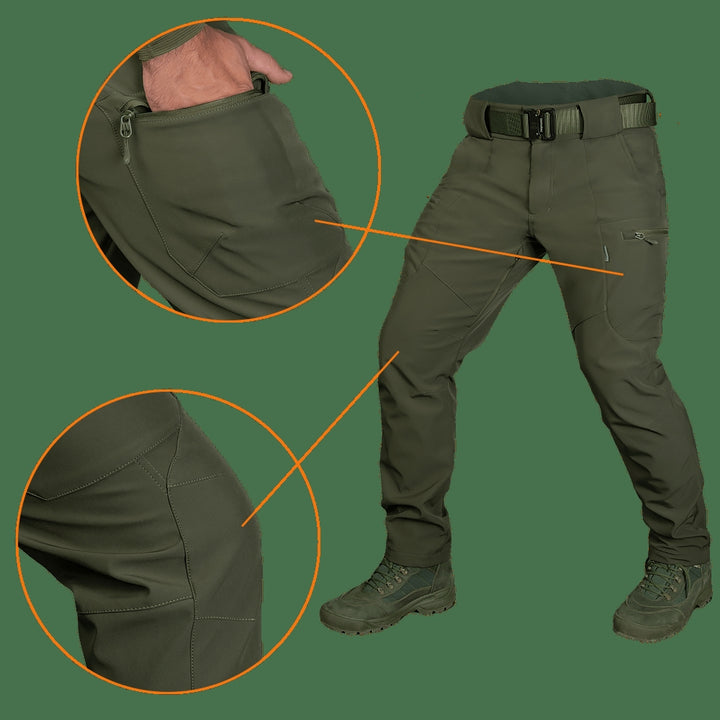 The SoftShell Vent Pants are perfectly suited for use as uniform attire in military and security organizations, offering a blend of durability, weather protection, and thoughtful design. They are also great for outdoor enthusiasts, hunters, and anyone leading an active lifestyle.