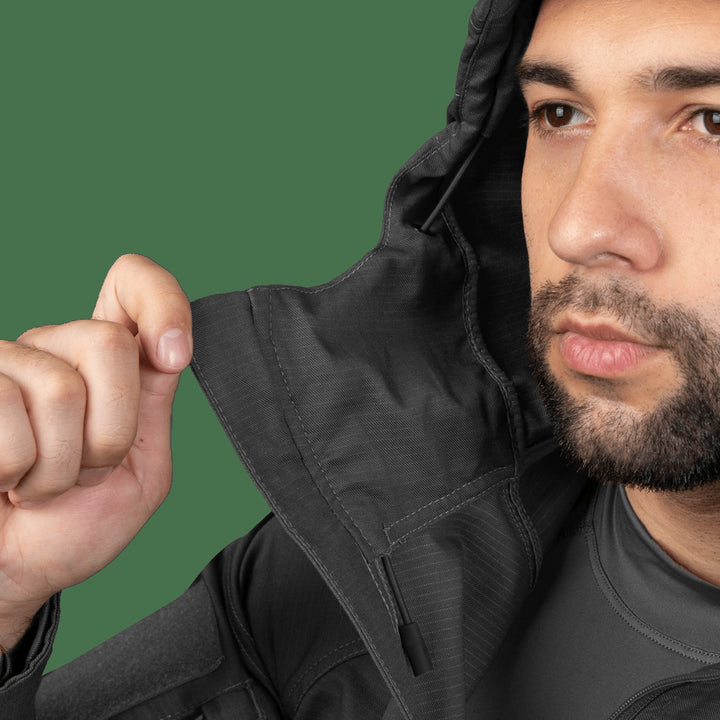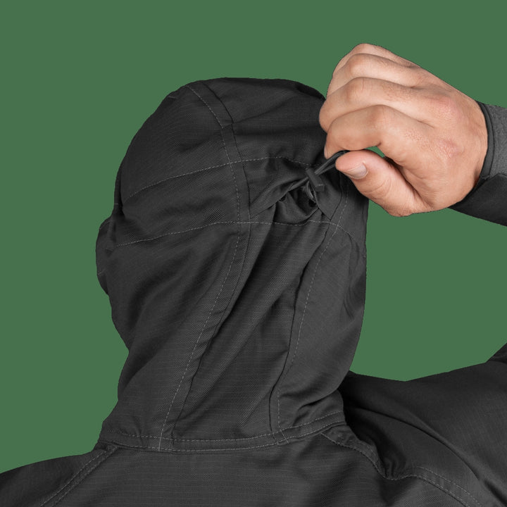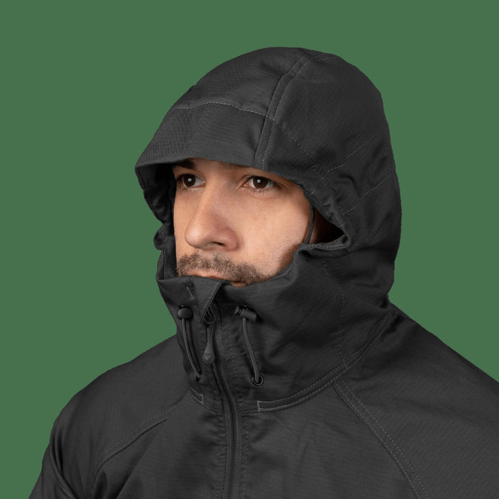 - High collar for chin protection and a hood with adjustments for fit and depth.