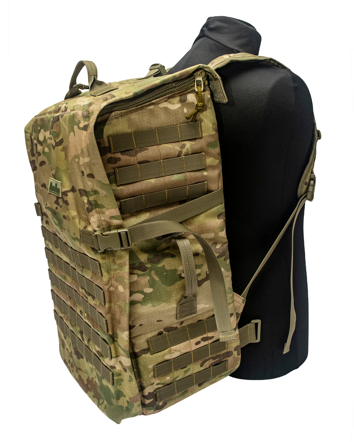 - PALS/MOLLE webbing on the front, sides, and bottom for modular attachment.