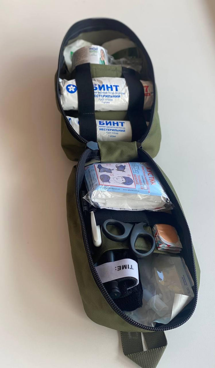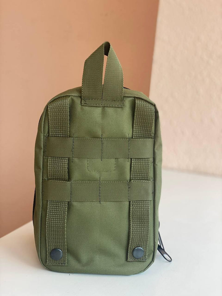 - Design: Minimalist tactical design with internal compartments and elastic holders for organizing bandages, tourniquets, sterile wipes, medication packets, and other critical items