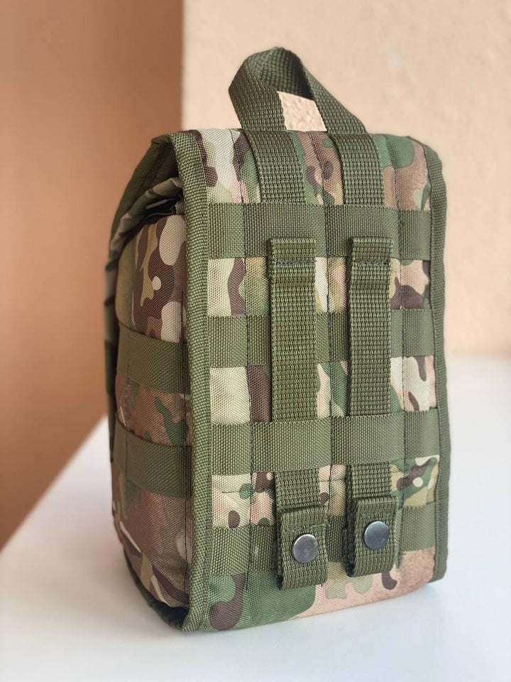 Note: The contents shown in the pouch are for demonstration purposes only and are not included. This pouch is ideal for military personnel, rescuers, hunters, or outdoor enthusiasts who value organization, quick access to their first aid kit, and versatile attachment options. Reliable materials and thoughtful internal organization ensure long-lasting performance and convenience in challenging conditions.
