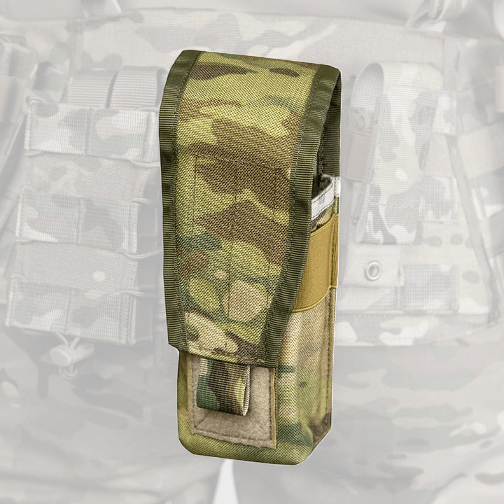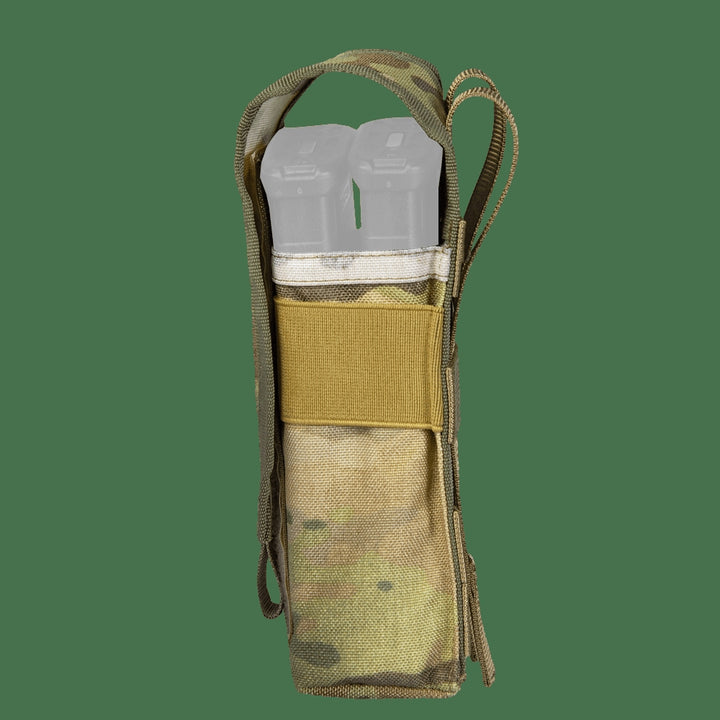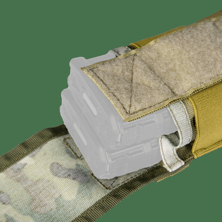 This pouch's closed design protects magazines from dirt and weather, while its compact dimensions ensure it occupies minimal space on your gear, providing ample room for two standard magazines. Order the TG/CTC Double Magazine Pouch for AK/AR in Multicam (8053) for a reliable product that meets field use requirements and integrates seamlessly into your gear setup.