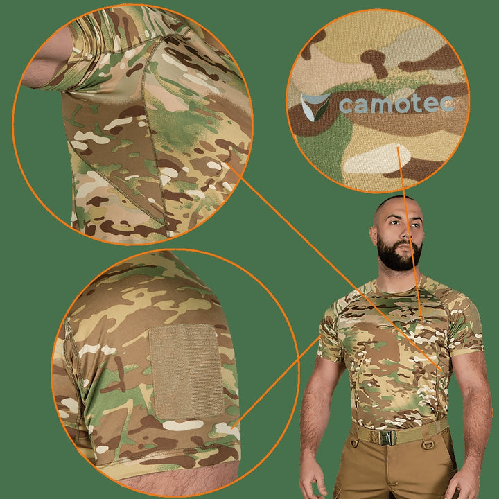 The Thorax Patrol Multicam T-Shirt (7579) by Camotec is designed as an essential base layer for tactical and military environments. Its versatility allows it to be worn as a standalone stylish uniform shirt, featuring hook-and-loop patches on the sleeves for easy customization.