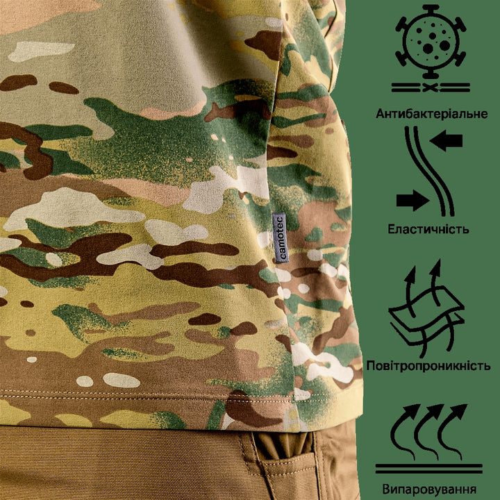 The Totem Multicam T-shirt (8076) by camotec is a versatile choice in the Military Apparel > T-shirts category. Designed for everyday wear, outdoor activities, sports, and field service, it combines freedom of movement, durability, and modern fabric technology.