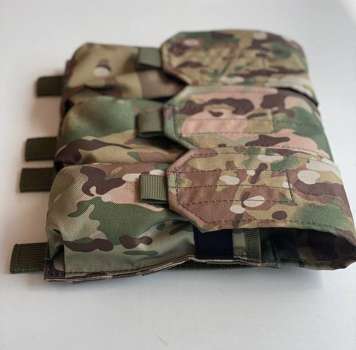 The DSG Pack Triple Magazine Pouch is a reliable tactical accessory designed to securely carry three AK magazines. Made from water-resistant Oxford 600D fabric, this pouch ensures durability and wear resistance in demanding environments.